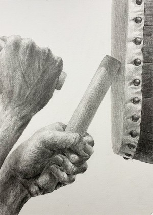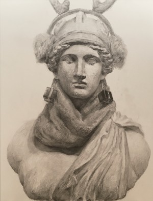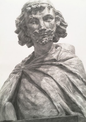 第一回デッサンリレーで生まれた作品。男子チームとは文字通り美大生男子3人で構成されたチーム。3人の浪年数を足すと10浪になるというだけあって高い水準の作品が生み出された。